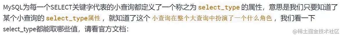 结果值从最好到最坏依次是: system > const > eq_ref > ref > fulltext > ref_or_null > index_merge > unique_subquery > index_subquery > range > index > ALL 其中比较重要的几个提取出来(见上图中的蓝色)。
