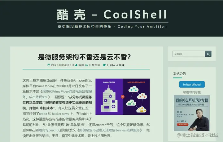 直至工作了几年,对分布式系统有了一些实际的项目实战,前段时间再次阅读他的课程和博客,依然能给我很多启发,也再次感叹耗子叔的技术深度。