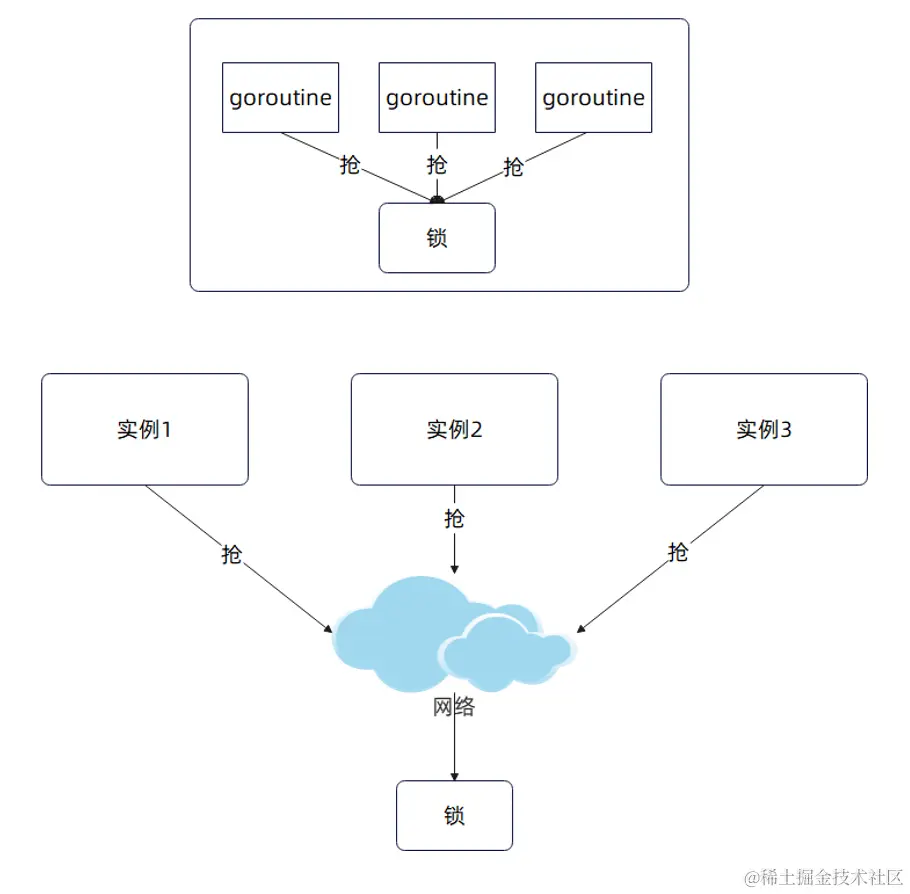 分布式锁,简单来说就是在分布式环境下不同实例之间抢一把锁。