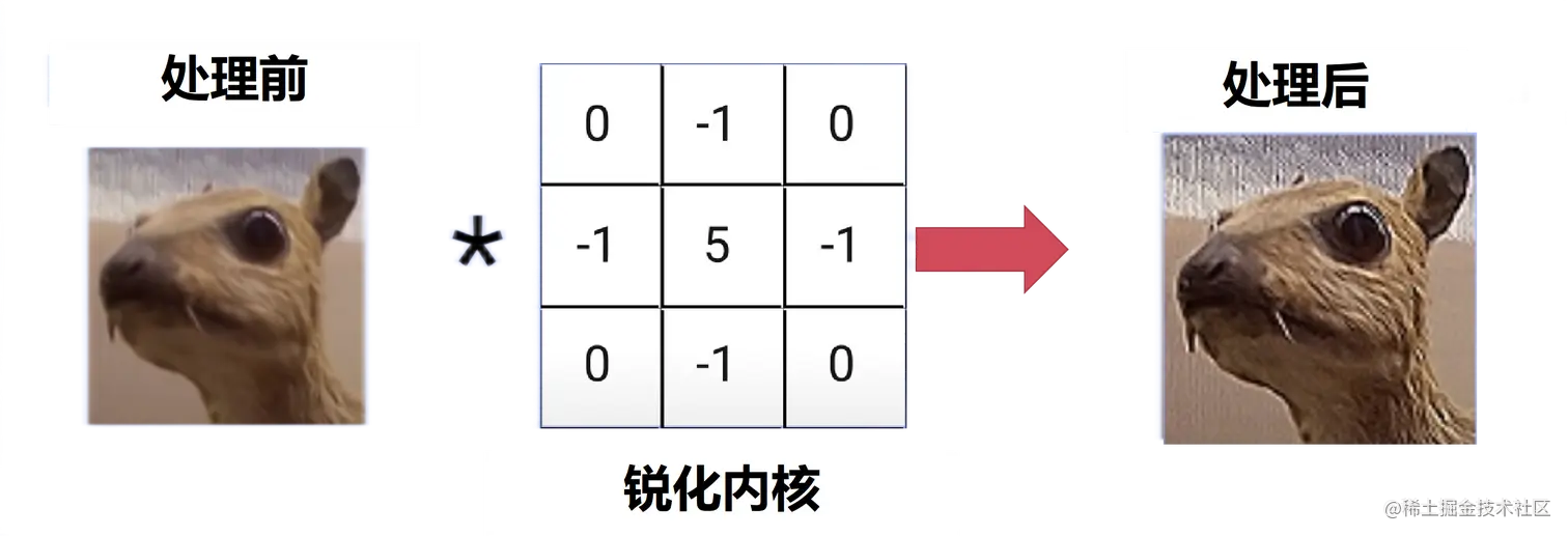 因此暗像素保持相对暗,反之亦然。还有锐化内核(Sharpen Kernel)