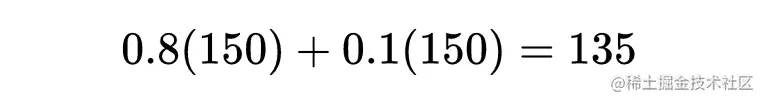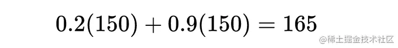 对于新的僵尸总数,我们要计算感染的20%的人类加上150个僵尸中没有被治愈的90%,得到的总数当然是165,因为这两个数字加起来总数是300。
