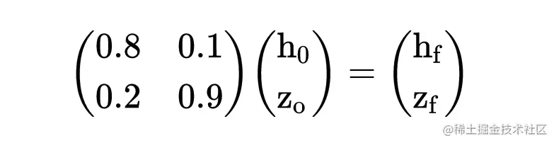 我们在这里看到的是一些线性方程,可以用一个百分比矩阵表示,这些百分比不会改变。