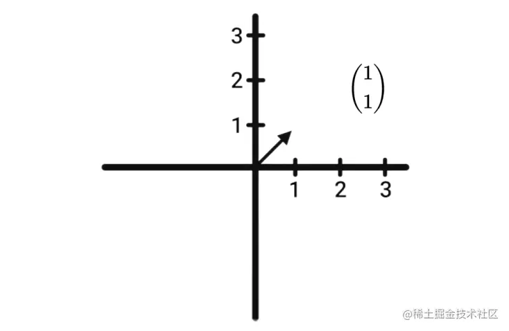 例如,从原点开始并以(1,1)为终点的矢量可以写成矩阵形式,如下图所示: