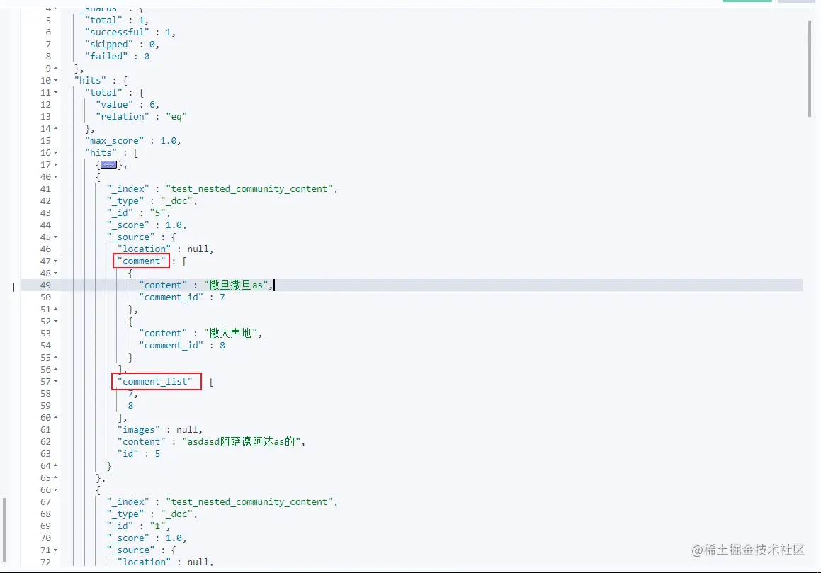 可以用上面RESTful方式的映射创建进行修改,主要的是嵌套的类型是nested,执行配置前运行SQL查询效果如下。