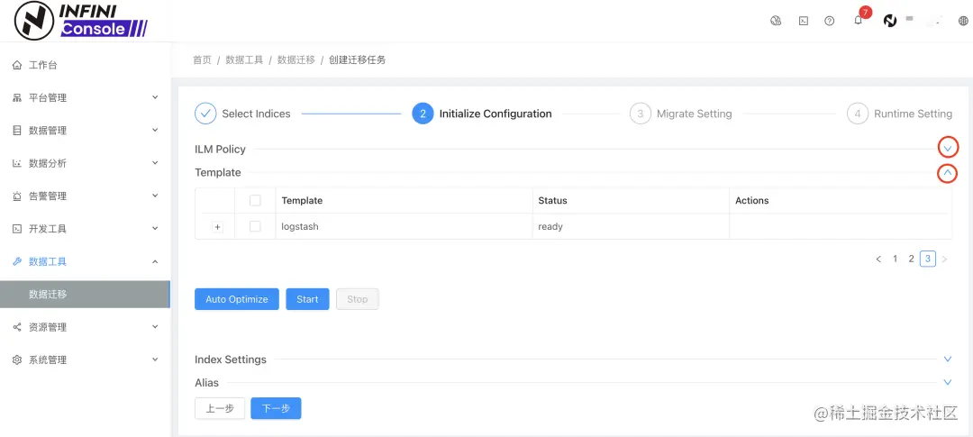 数据迁移模块,基于上个版本做了优化,添加 ILM,Template,Alias 初始化操作。方便用户根据各自的需求迁移索引生命周期、模板、别名等。