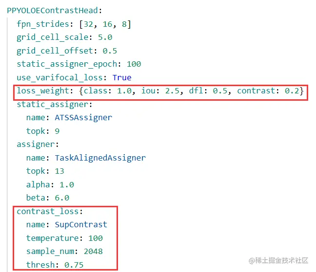 PP-YOLOE在Head损失权重上加入Supervised Contrastive loss函数,通过引入Contrast算法,提升了2.4 Box AP