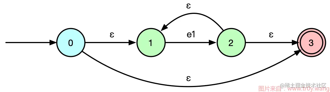 这样我们把正则表达式视为一系列输入和运算,进行分解、组合,就可以得到最终的 NFA。