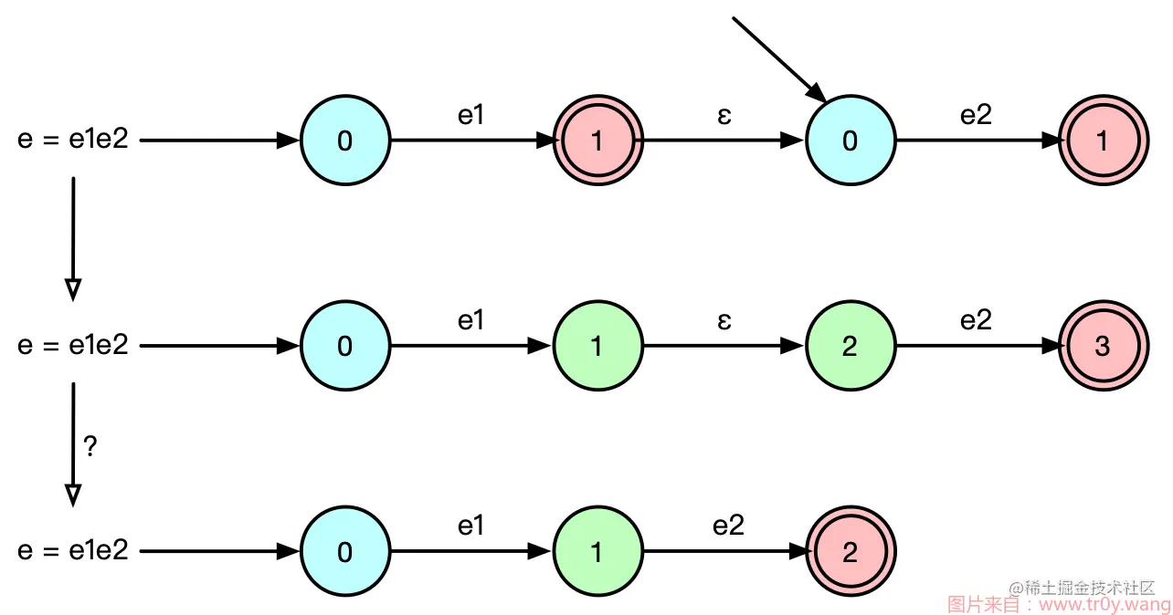 可以看到, 上面的两张状态转移图已经接近于状态机了, 所以下文开始讲正则的原理以及状态机