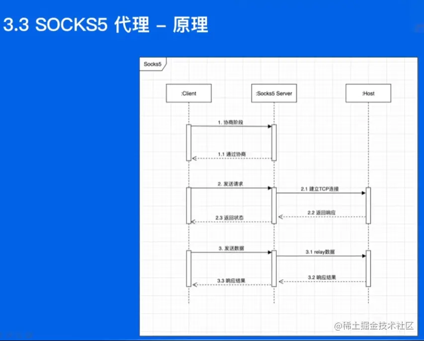 6,Socks5代理服务器转发响应到客户端: Socks5代理服务器接收到目标服务器的响应后,会将响应转发给客户端。