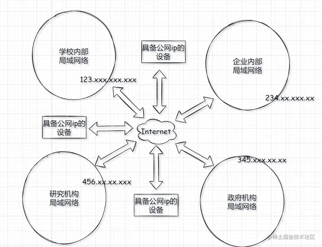 连接在互联网上的具有ip的可以是一个单个的设备,比如某个服务器、某个网络摄像头等,也可以是某个局域网,如学校的校园网,公司内部网络等(局域网与公网通信使用NAT、PAT等方式,或内网穿透等技术)。