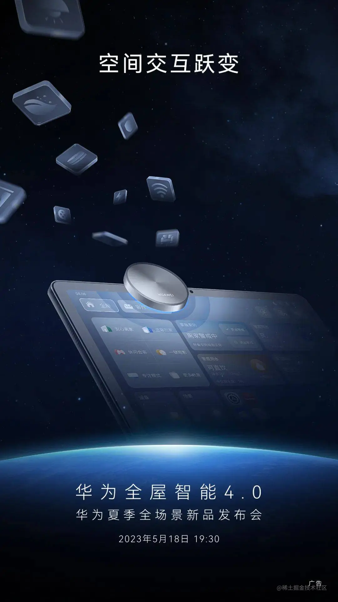 正是在这样的背景下,华为官方发布了一张预热海报,预告将在5月18日举行华为夏季全场景新品发布会,届时将带来全新华为全屋智能4.0,并在海报中提出了“空间交互跃变”的口号,大概率会在空间交互上交出“核弹级”的创新。