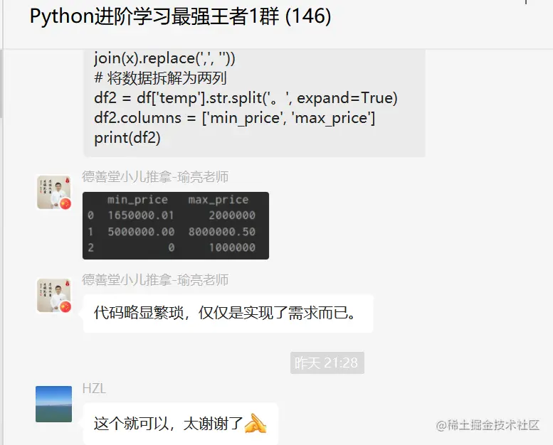 最后感谢粉丝【HZL】提问,感谢【༺࿈黑科技·鼓包࿈༻】、【大锤子】、【瑜亮老师】、【隔壁山楂】给出的思路和代码解析,感谢【eric】等人参与学习交流。