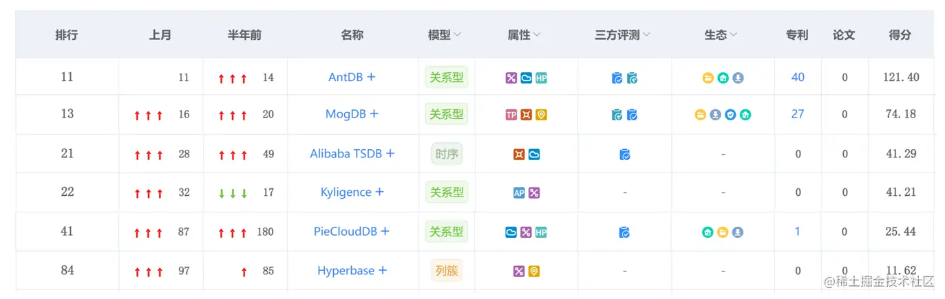 在本月排行榜十名之后,部分数据库厉兵秣马、奋发图强,取得了一定的成绩。小编仅在此筛选了部分数据库的得分和排名,一起来看看它们的发展动态。