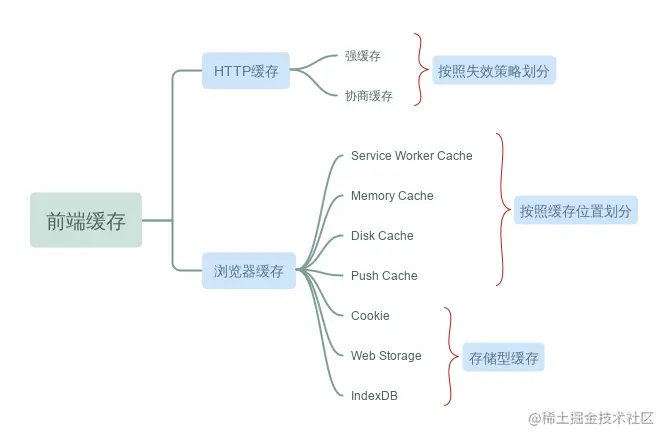 首先,我们需要了解前端缓存的分类。下面是一个图示: