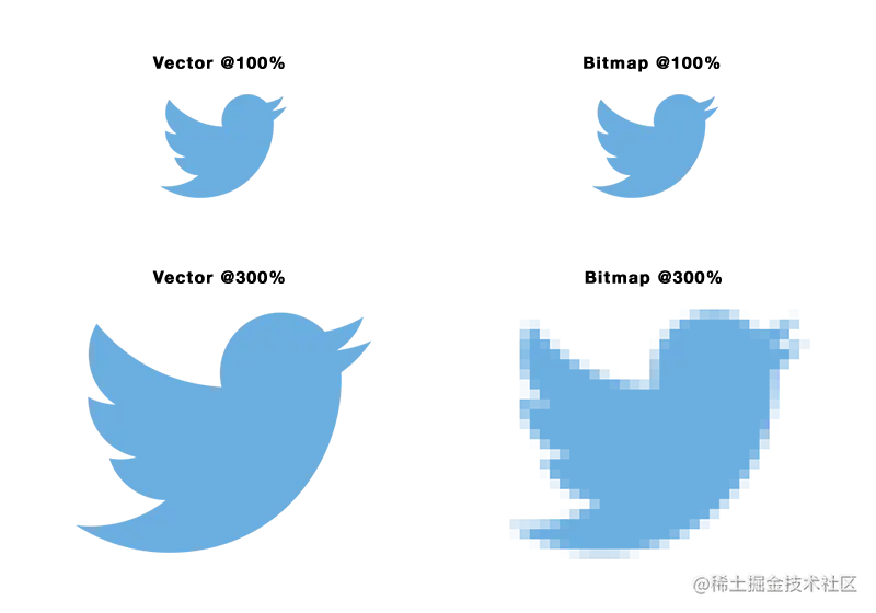 图片的描述主要分为位图(bitmap)和矢量图(vector),图片放大之后我们可以清晰的看到它们的本质和区别