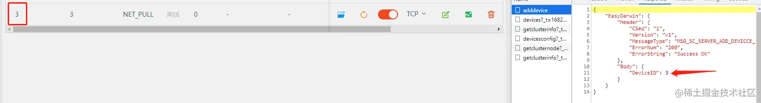 2)可以看出此时adddevice接口返回200OK,但实际的DeviceID却是0 。接口返回正常但实际并未生效,查看日志也无明显的error。
