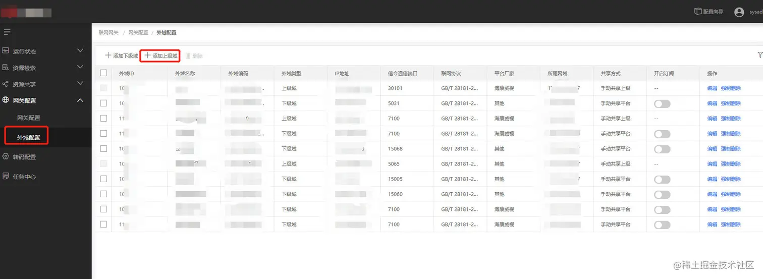 4)找到外域配置,选择添加上级域;