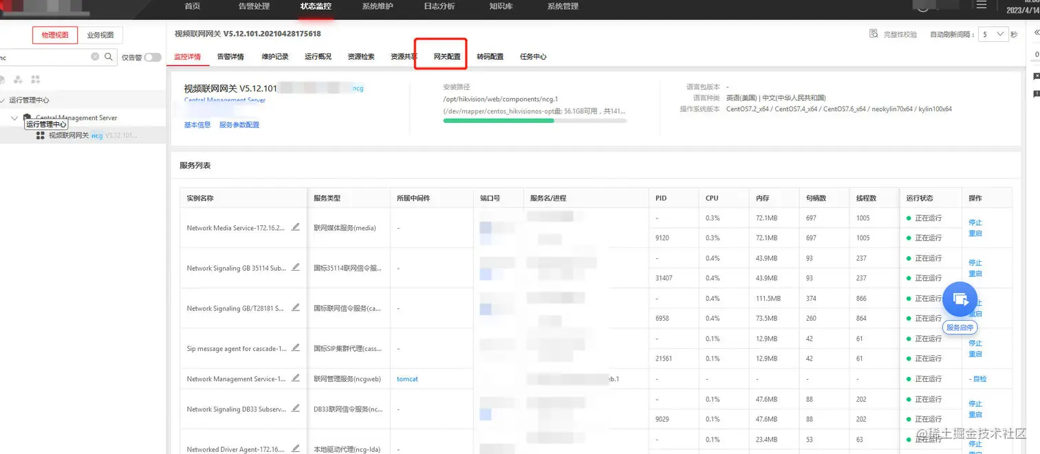 2)找到视频联网平台的网关模块;