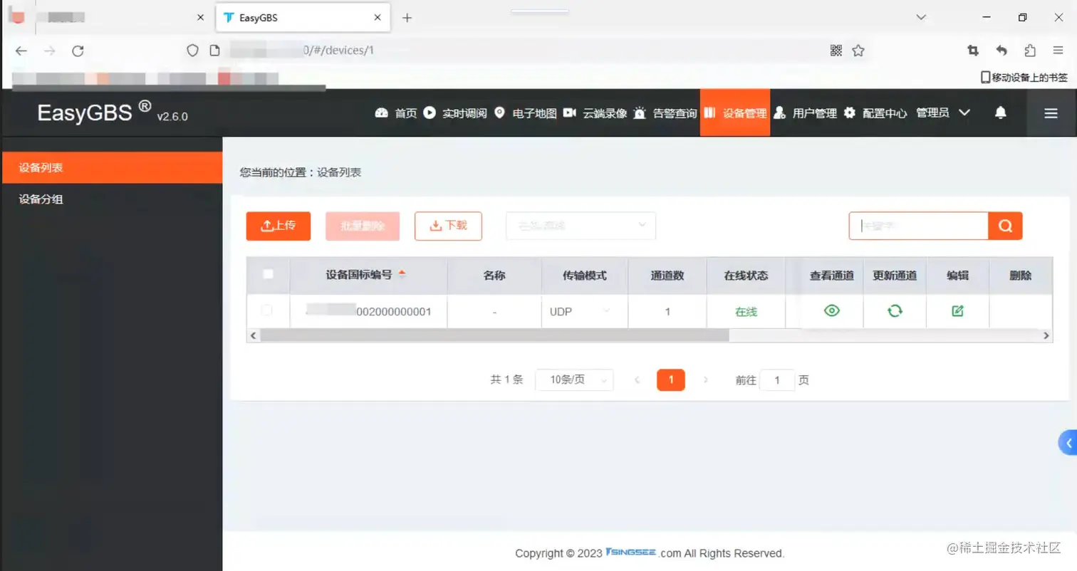 7)添加完成后,打开EasyGBS就会发现,设备已经上传完成了。