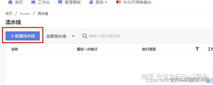 2 在流水线列表点击“新建流水线”,开始新建流水线