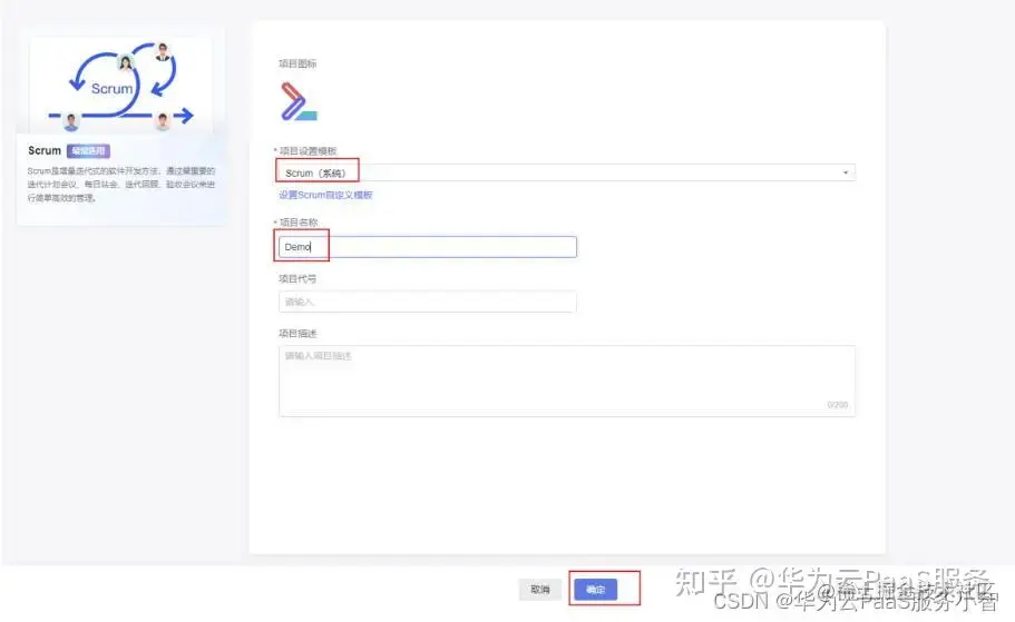 点击标注的“Scrum”区域,创建“Scrum”类型项目,参数如下: