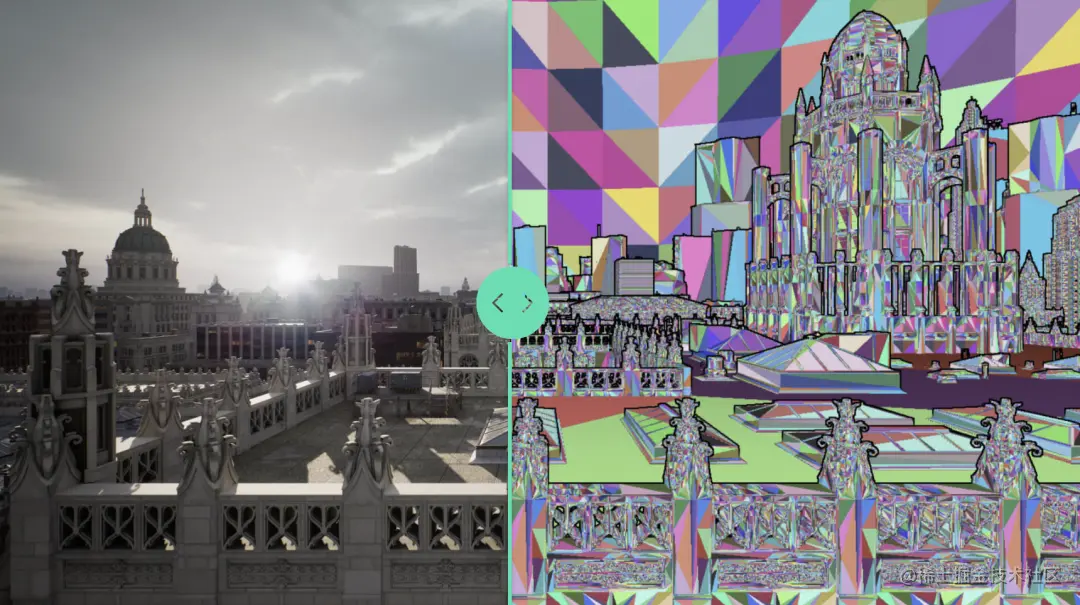时间来到2022年4月,ChatGPT还有8个月到达战场,而这个月UE5正式发布。关注的同学想必都知道,效果那是无比的惊艳:Nanite的超大规模三角面片实时渲染,Lumen的动态全局光照。在官方DEMO《The Matrix Awakens》里我们也能看到现今实时渲染到底能做到什么水平。