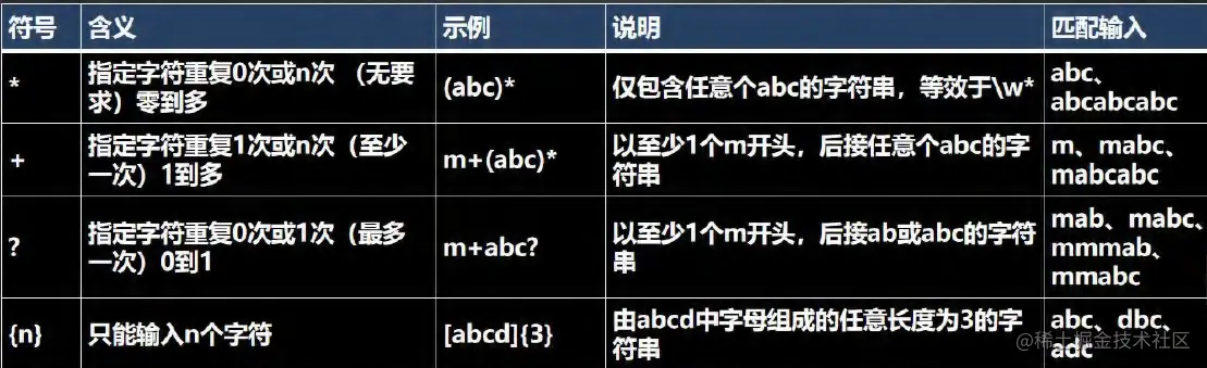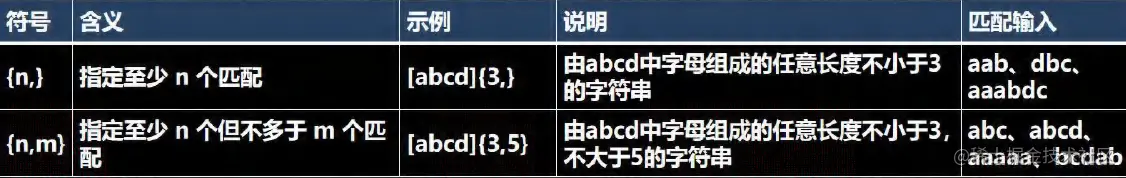 | \un | 匹配 n,其中 n 是以四位十六进制数表示的 Unicode 字符。例如,\u00A9 匹配版权符号 (©)。 |
