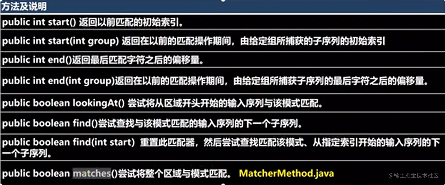 //理解: 就是 matcher 匹配器按照 pattern(模式/样式), 到 content 文本中去匹配