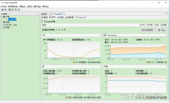 4)VisualVM:一个功能强大的性能分析工具,可以统计CPU、内存、GC等各种指标,并提供图形化界面。