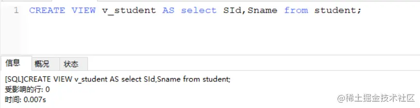 CREATE VIEW v_student AS select SId,Sname from student;