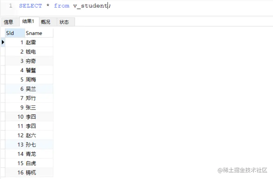 SELECT * FROM v_student;
