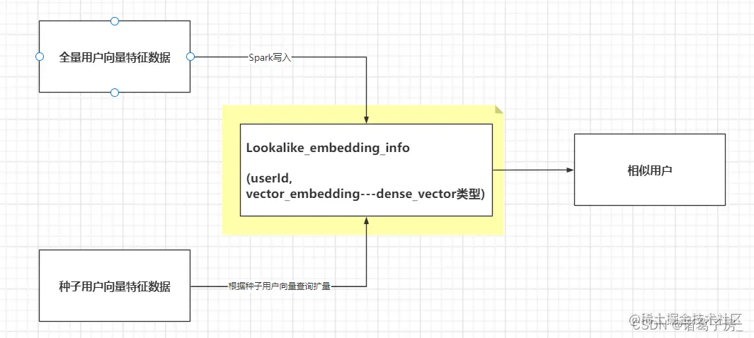 (5)根据种子用户关联用户向量特征得到可以匹配上的用户的向量特征,种子用户id,种子用户向量