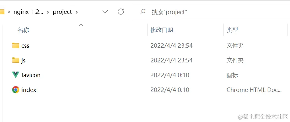 project文件夹内容截图配置项和文件都替换过了 我们cmd运行nginx