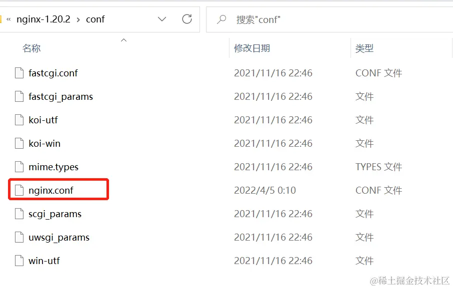config这里我们修改nginx.conf文件