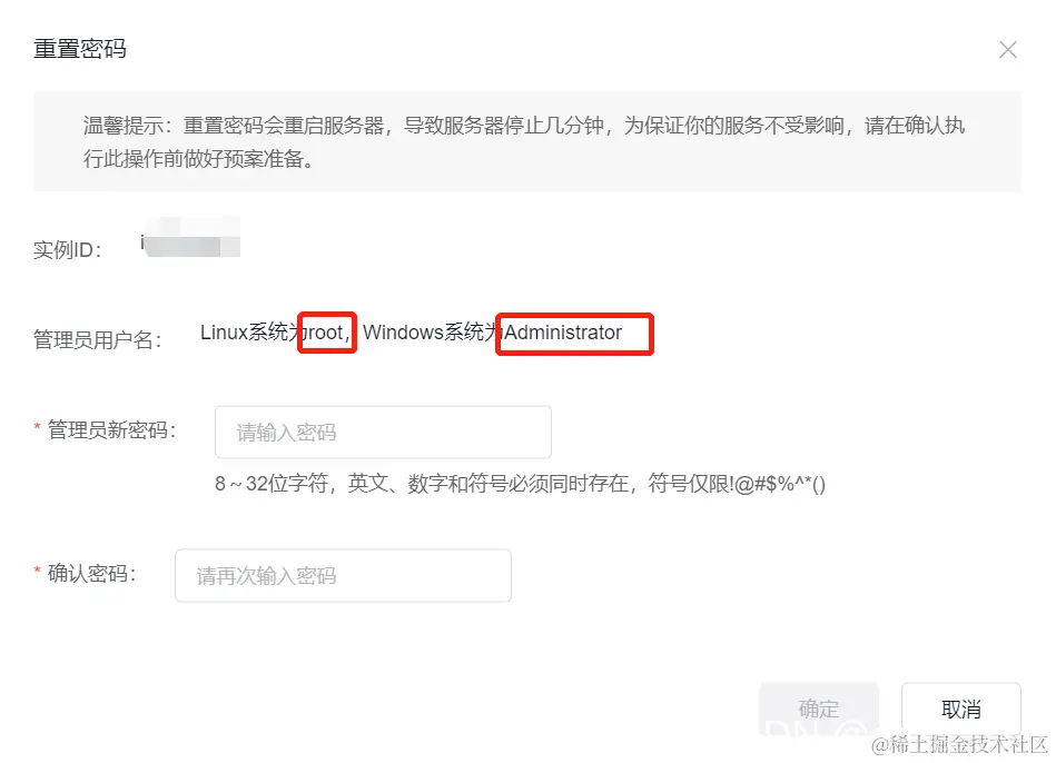 输入2次密码 这个密码的作用是后期远程登录服务器的时候 需要用到 我这里买的是window的镜像 所以这篇文章都讲window window远程登录默认用户名是Administrator