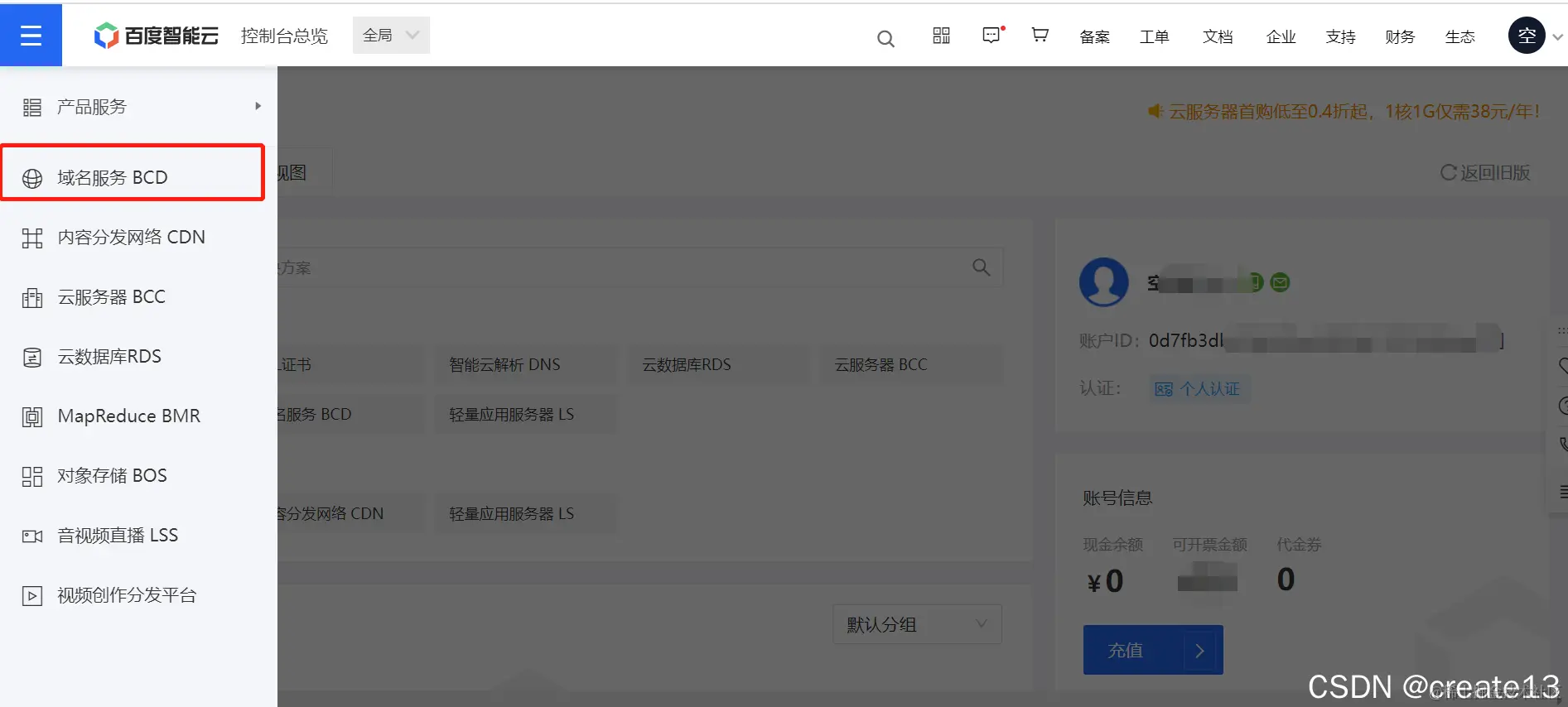 修改完密码之后 我们就去买个域名 域名买好之后 还是管理控制台-》点击域名服务BCD