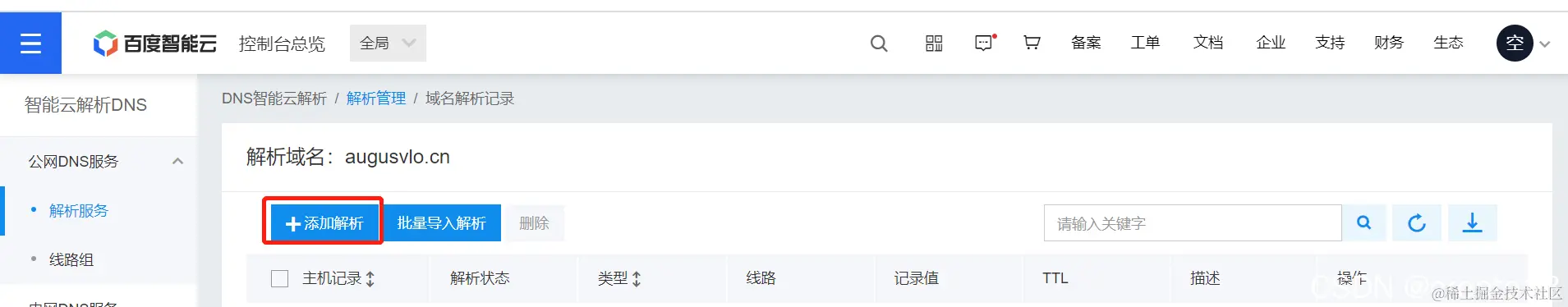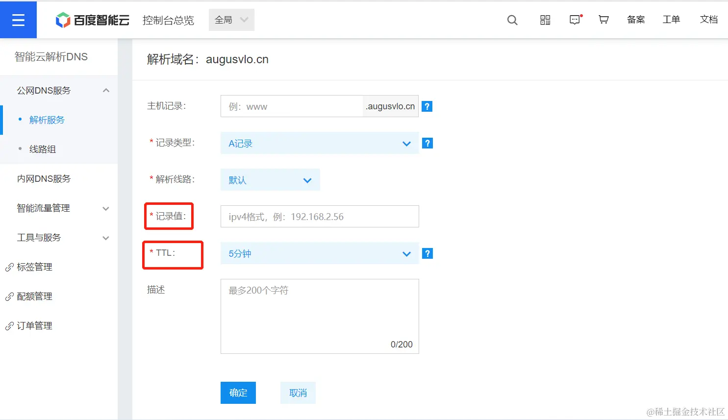 记录值要写公网IP地址 上文中提到过 在重置密码旁边 TTL 不改也行 我点选了看提示默认常规情况下10分钟 我这里设置的是10分钟