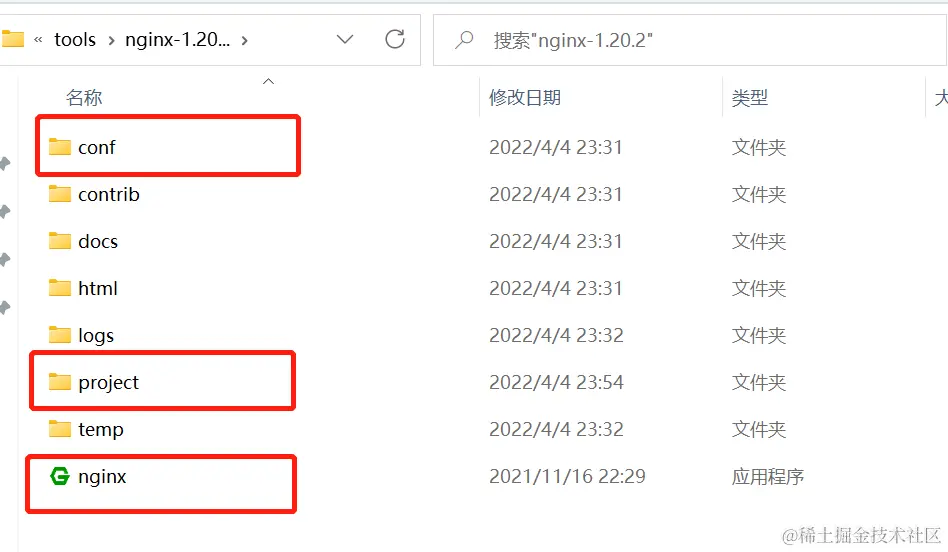 nginx这里用到这三项 conf下修改配置server等信息 nginx点击运行 project下面存放想要跑起来的web应用内容