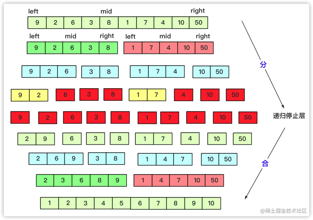 - 治(Conquer):递归求解,如果问题够小直接求解。