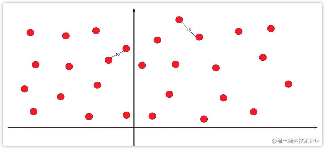 最近点对是一个分治非常成功的运用之一。在二维坐标轴上有若干个点坐标,让你求出最近的两个点的距离,如果让你直接求那么枚举暴力是个非常非常大的计算量,我们通常采用分治的方法来优化这种问题。
