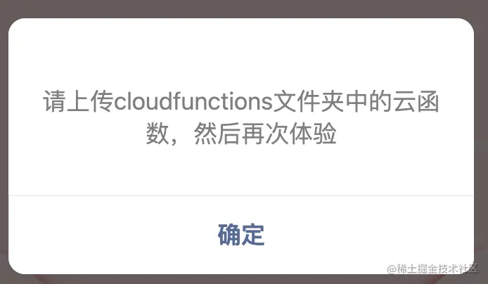 content: '请上传cloudfunctions文件夹中的云函数,然后再次体验', // 此提示可以在正式时改为 "网络服务异常,请确认网络重新尝试!"