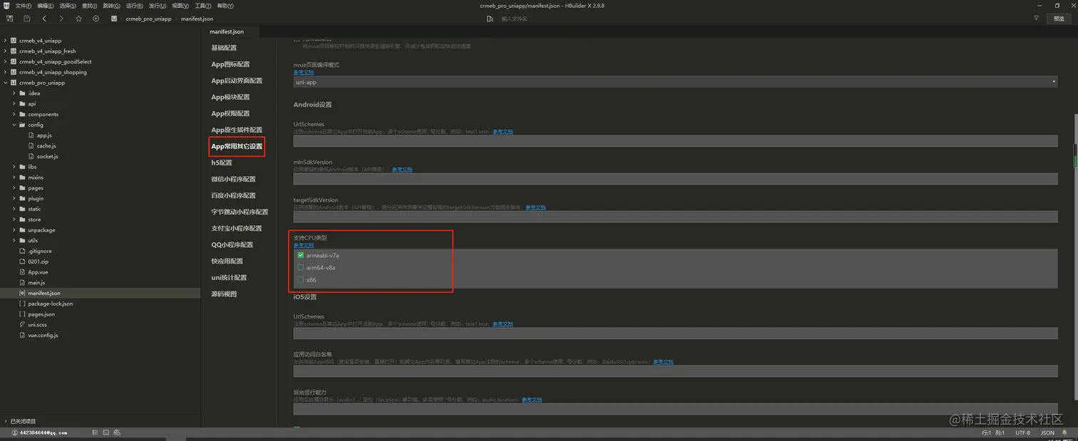 5.点击《App常用其他配置》,勾选《支持CPU类型》下的armeabi-v7a