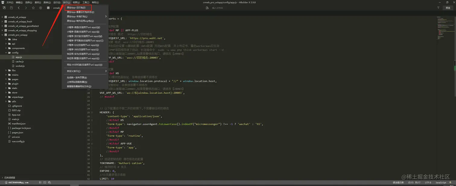 1,点击发行>原生-app云打包