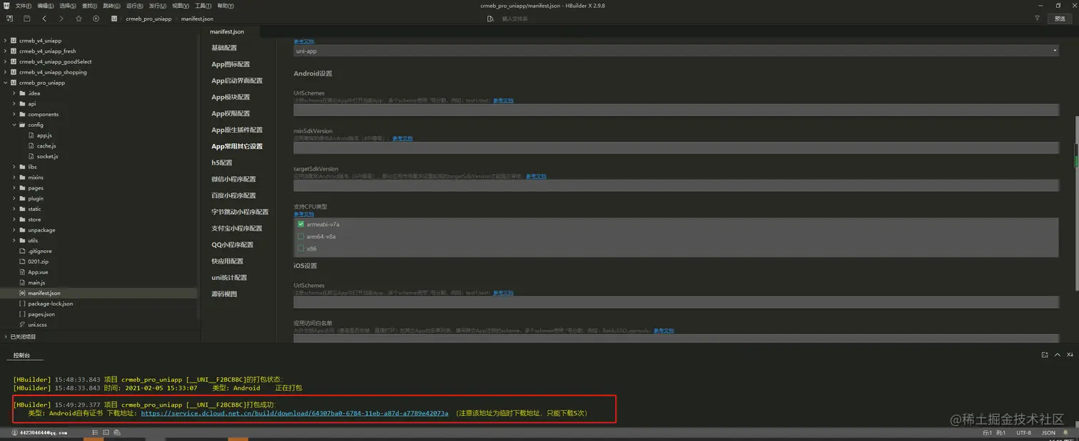 配置好以后点击打包,打包成功后控制有链接自行下载就可以了