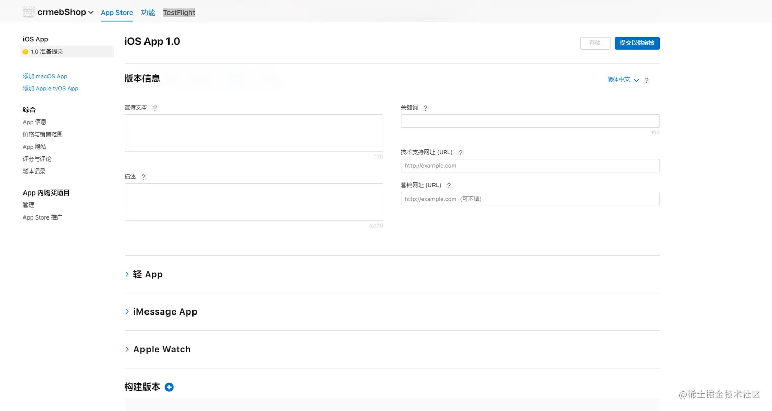 在Apple开发者平台点击AppStore,填写里面所有的相关配置再点击右上角的提交就上架审核了,审核通过后在手机Appstore就可以搜到上架的应用