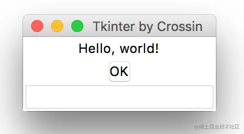 在调用 mainloop 前,增加了 Label(文本标签)、Button(按钮)、Entry(输入框)三个控件,通过 pack() 方法把它们添加到了窗口之上。