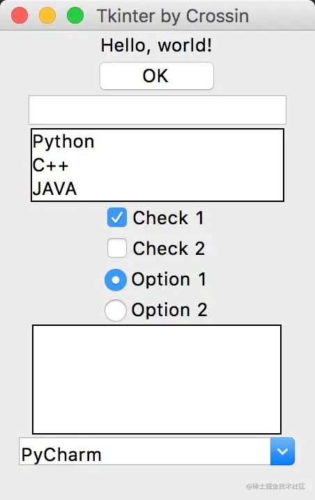 举几个 Tkinter 常用控件的例子: