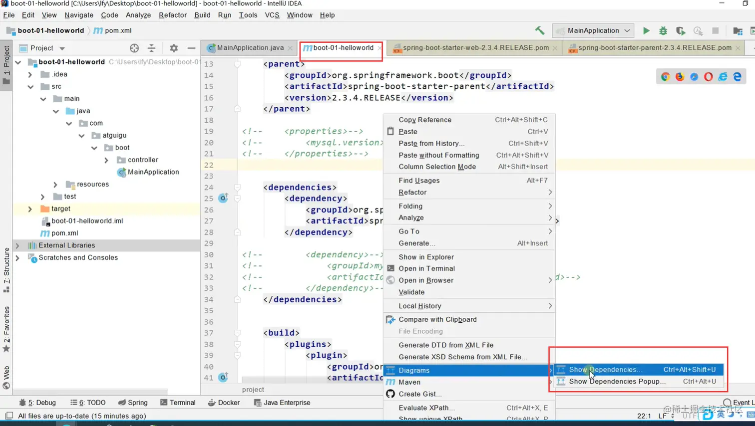 2、只要引入starter,这个场景的所有常规需要的依赖,SpringBoot都帮我们都自动引入了(maven的依赖传递原则)