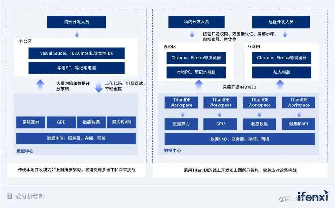 > 需要具备完善的安全防护机制。在传统应用开发模式下,IDE工具普遍只能部署在本地使用,代码安全性易受到较大威胁。并且由于缺乏完善的安全防护机制,员工离职、电脑丢失等原因所引起的核心代码泄漏事件频繁发生,容易对企业造成不可估量的经济损失。因此,具备完善的安全防护机制,是当前企业对于云原生IDE的最核心需求。