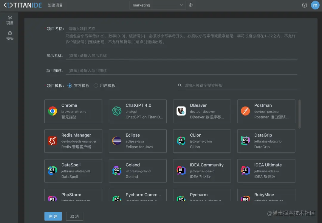 另一方面,TitanIDE还内置了拥有海量应用开发场景的模板市场。通过TitanIDE整体部署使用,能够帮助企业开发人员无需重复配置开发环境,实现一键启动Java业务开发、Python人工智能、Golang物联网的开发、C++等主流开发语言以及业务场景所需要的中间件、数据库、API接口等配套开发环境,有效将原来一两周的环境准备时间缩短至不到一分钟,帮助每一位开发者快速创建一套完整的、专属的开发调试环境。通过TitanIDE的整体应用,帮助企业用户有效避免了传统模式下因联调环境单一而出现的效率低下和相互干扰,并且满足团队复杂开发场景下的个性化的应用开发需求。